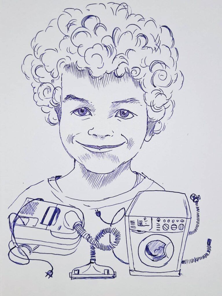 Eines Tages hat mein kleiner Freund Benio (Zeichnung von Mariusz) seine umfangreiche und oft benutzte Staubsaugersammlung links liegen gelassen und hat sich Glocken zugewendet. Er hat inzwischen verschiedene Glocken-Spielzeuge,